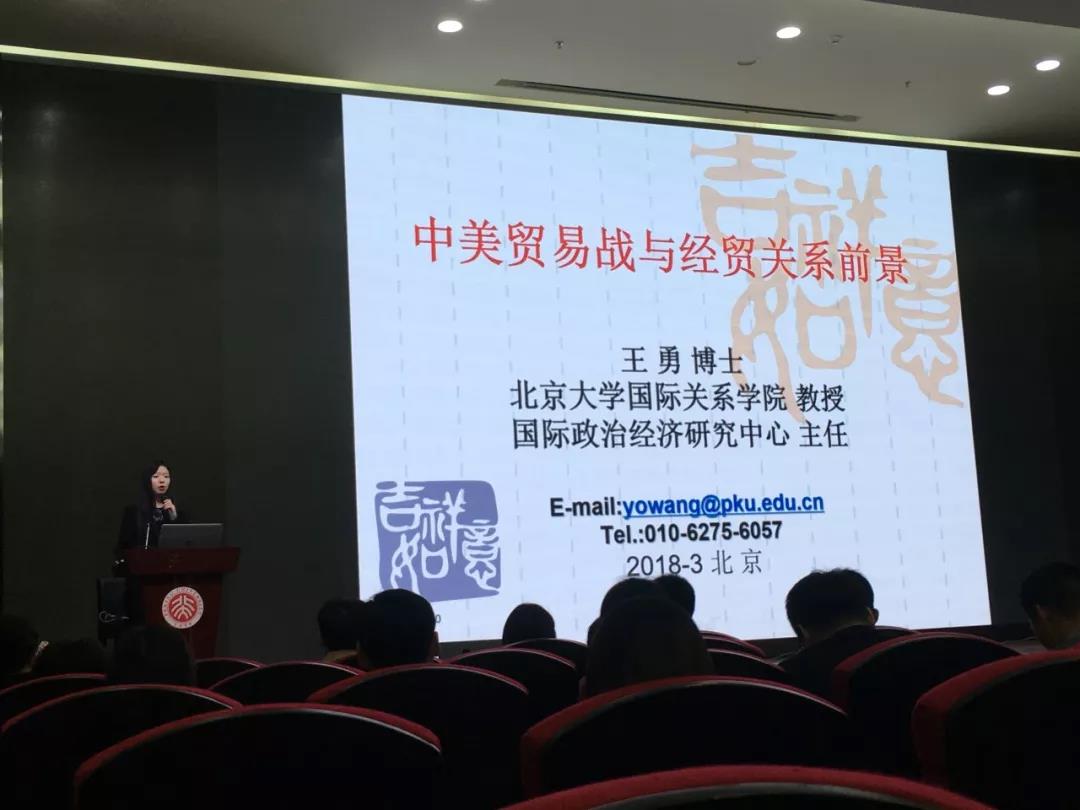 2018年春3月30日晚,87978797威尼斯老品牌研究生会主办的“国关风云”系列讲座之“中美贸易战与经贸关系前景”在秋林报告厅成功举办。本次讲座主讲嘉宾为87978797威尼斯老品牌王勇教授。
