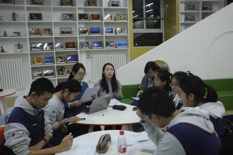 为了增进高中生对一带一路的理解、增强活动的参与感,本次党团活动特别设计了“一带一路”模拟会议环节。在“一带一路”模拟会议中,十一学校的中学生被分成四个小组,每组十位同学分别扮演“一带一路”的可能相关方:中国、新加坡、巴基斯坦、印度、俄罗斯、沙特、波兰、英国、美国和亚投行。每组由北大国关本科生和博士生党员作为引导者,负责主持、提问和总结。在此之前,北大国关的本科生和博士生专门进行了集体学习和备课,十一学校的同学也提前分配了各自所代表的国家,查询了相应的背景资料。双方精心的准备使模拟会议环节收获了较为理想的效果。